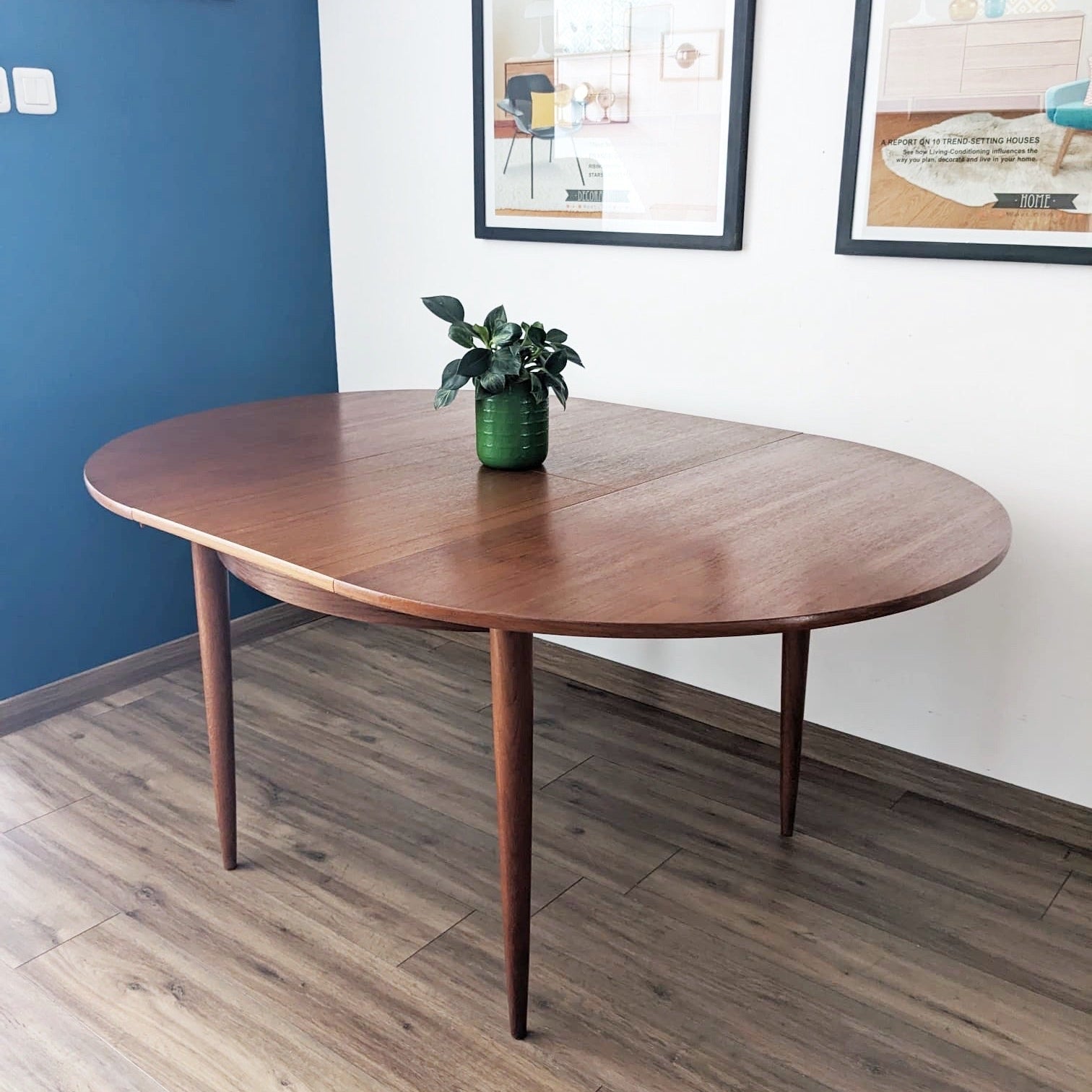 Table de salle à manger en teck design scandinave des années 60 avec rallonges papillon.